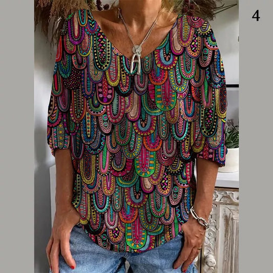 Assia – Elegancki, swobodny T-shirt z abstrakcyjnym nadrukiem