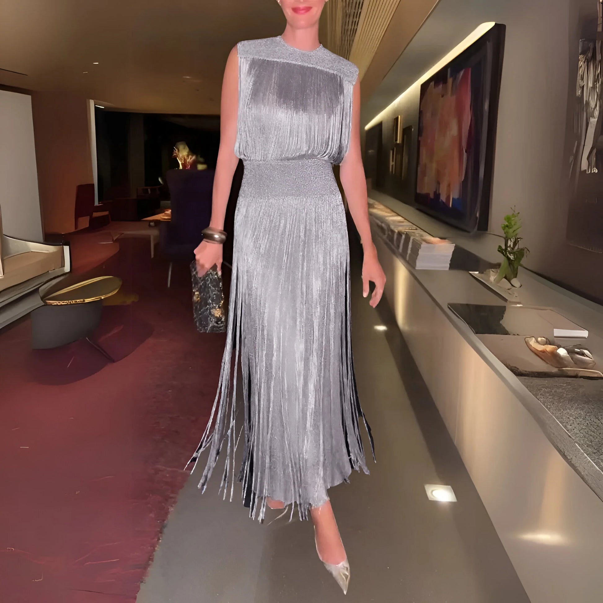 Auriane została zaprojektowana, aby olśniewać, z dwuczęściową sylwetką, która porusza się jak płynne światło. Płynne detale i wyrafinowany krój sprawiają, że jest to wybór na eleganckie wieczory i niezapomniane wejścia.