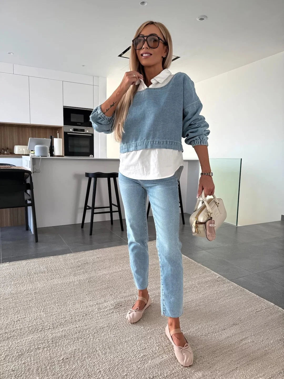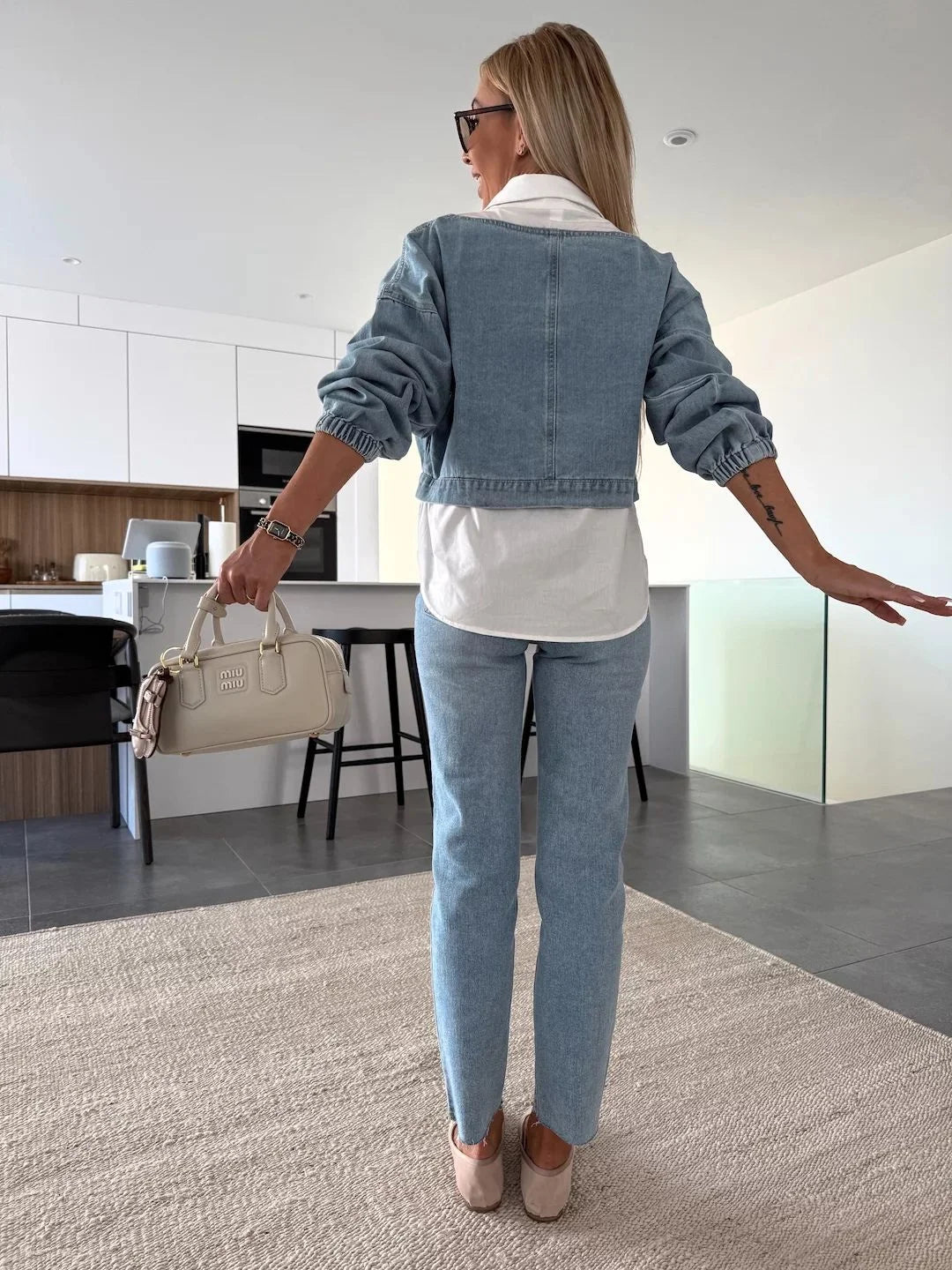 Luźna, krótka bluza dżinsowa