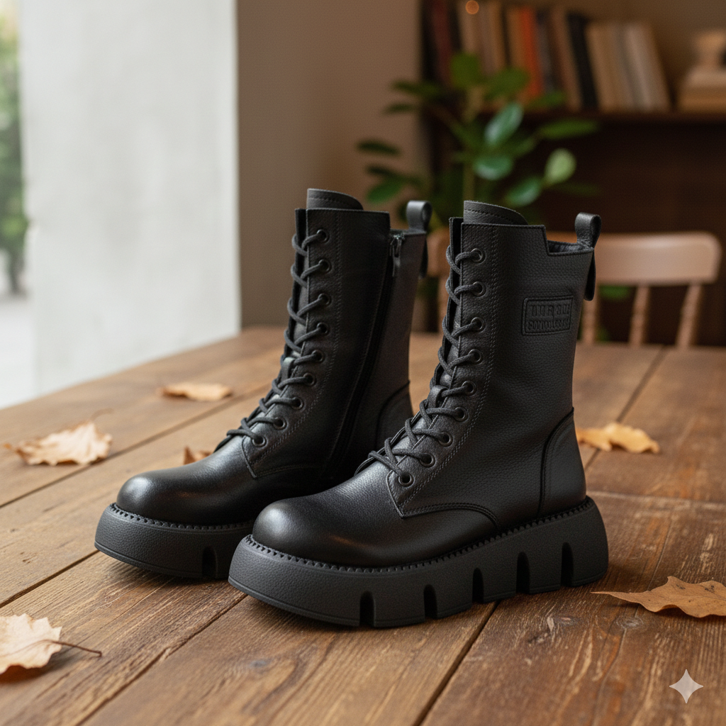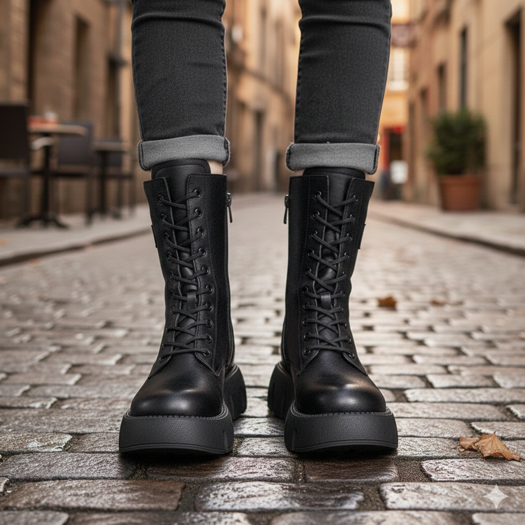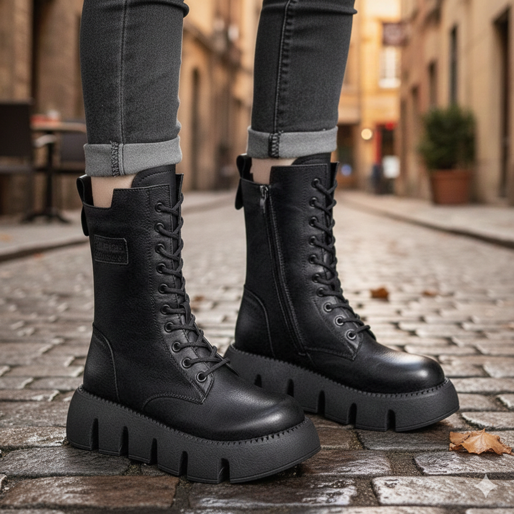 Damskie botki z grubą podeszwą i bocznym zamkiem samochodowym