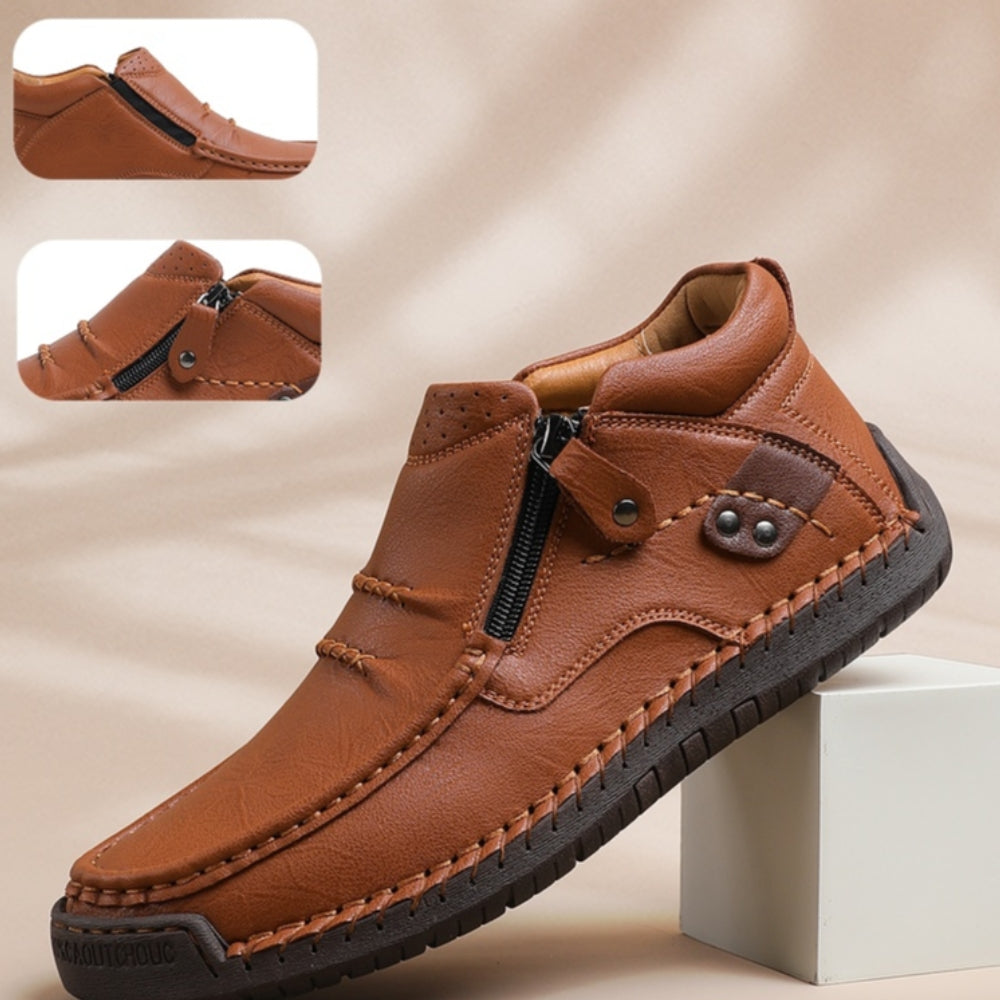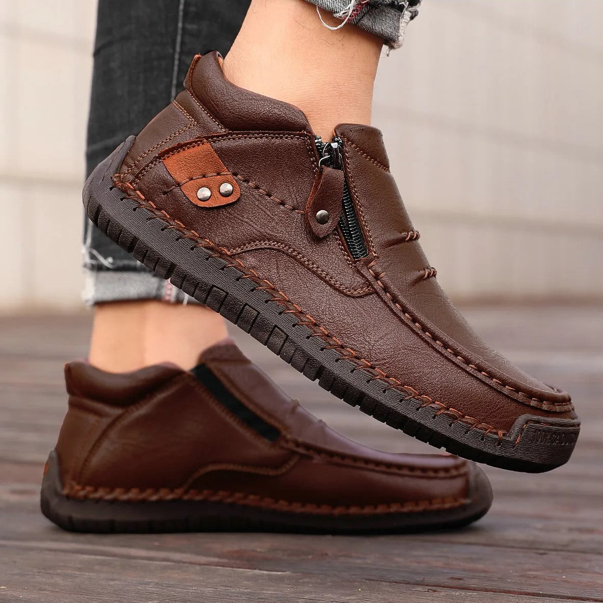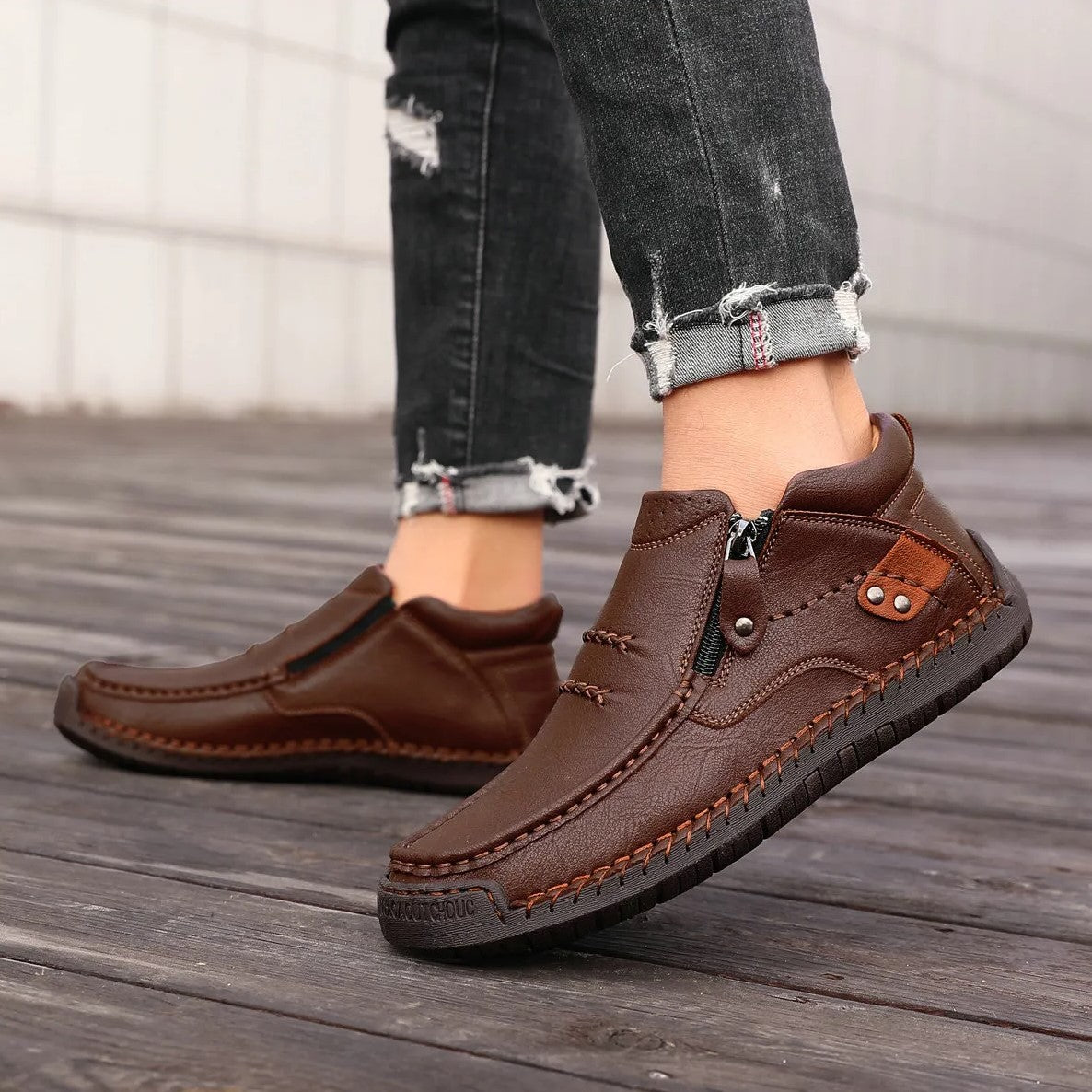 Starannie szyte ręcznie z wysokogatunkowej skóry, zapewniają wyjątkową trwałość, bogatą fakturę i ponadczasowe rzemiosło. Boczne zapięcie na suwak oraz regulowany pasek umożliwiają szybkie zakładanie i zdejmowanie, gwarantując jednocześnie pewne i wygodne dopasowanie przez cały dzień.