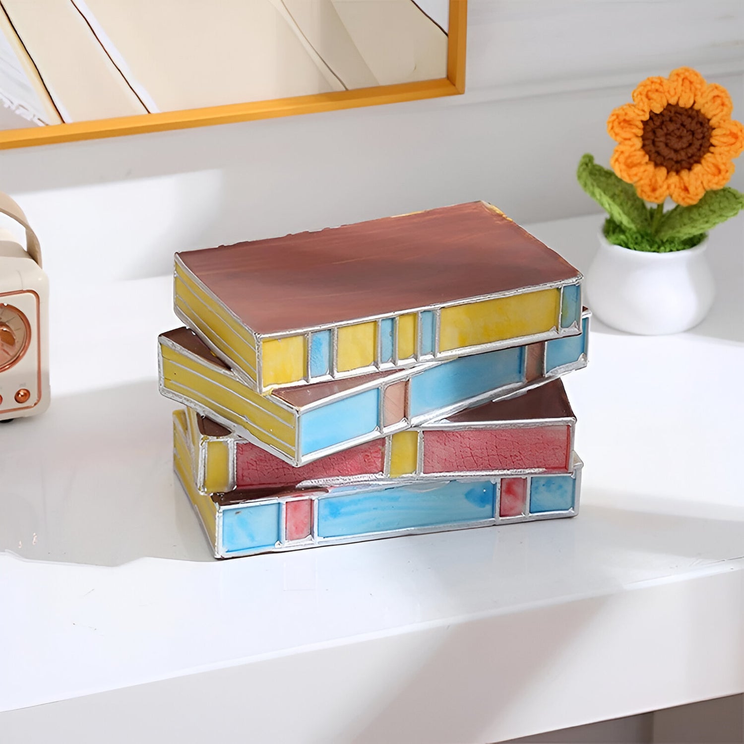 The Stacked Books Resin Lamp adds a cozy, bookish touch to any room. Designed to look like a small pile of classic novels, it brings a sense of warmth and nostalgia to your bedside, reading corner, or desk. The stained-glass-style panels glow in soft amber, red, and green tones, creating a calm and inviting light that feels perfect for quiet evenings.
