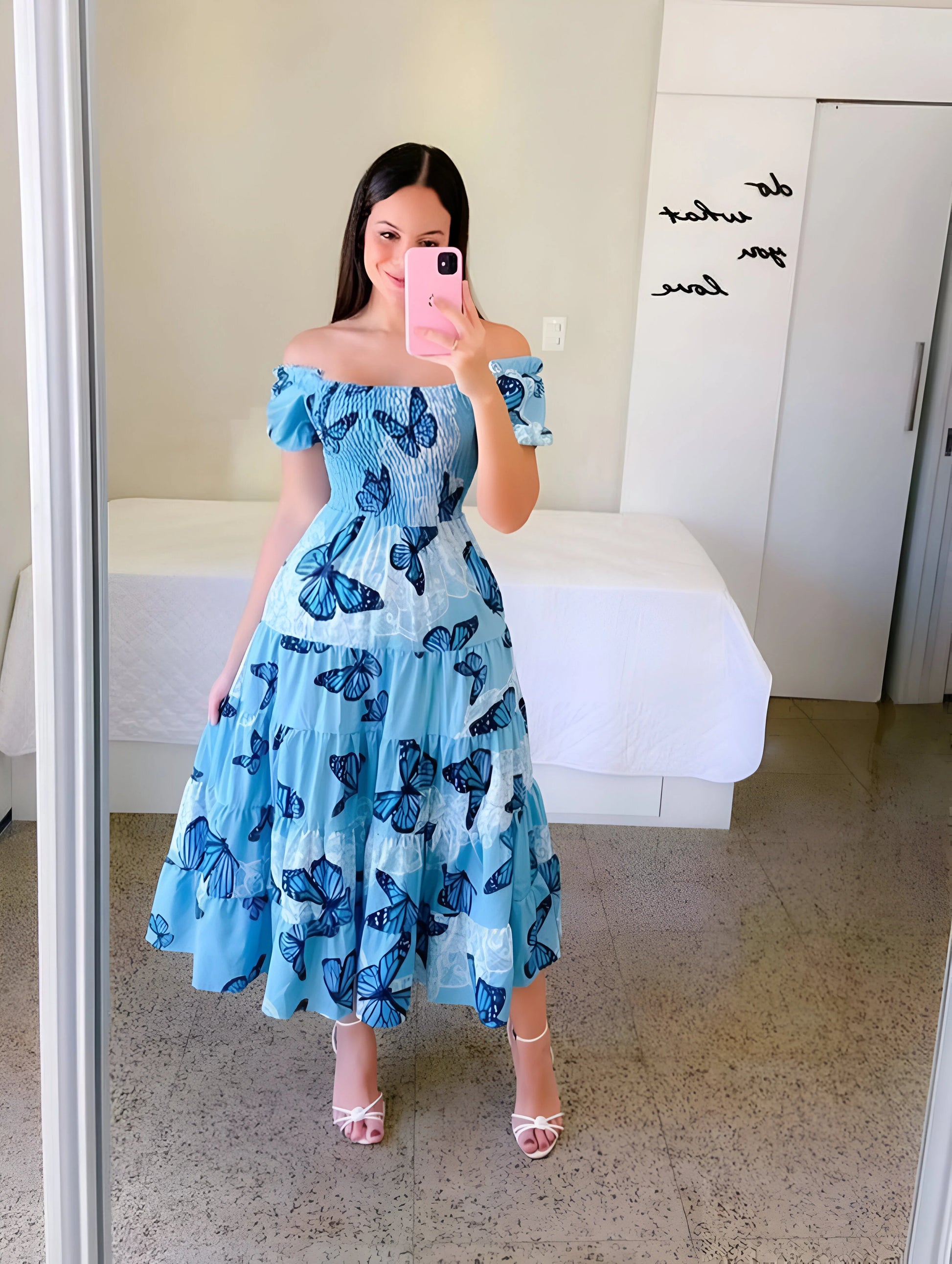 Urocza i figlarna, ta warstwowa sukienka midi ma marszczony gorset i miękkie bufiaste rękawy, co zapewnia pochlebny, kobiecy wygląd. Dostępna w wielu żywych kolorach i wzorach na każdą słoneczną wycieczkę.