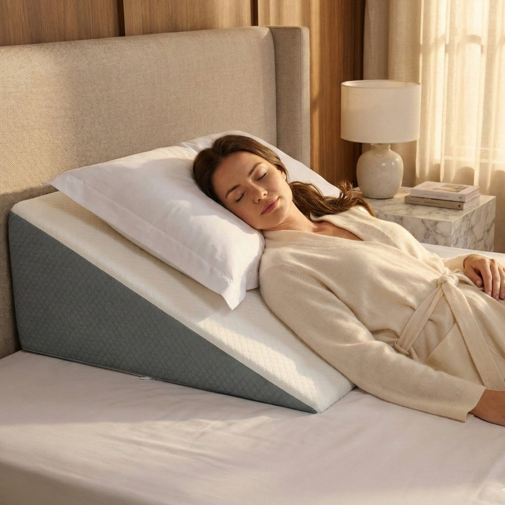 Zmagasz się z bólem szyi, pleców lub dyskomfortem związanym z refluksem żołądkowym ? Poduszka SpineEase™ została zaprojektowana specjalnie z myślą o rozwiązaniu tych problemów. Jej ergonomiczny, klinowaty kształt podtrzymuje ciało, pomaga złagodzić ból szyi i ramion oraz redukuje objawy bezdechu sennego i refluksu żołądkowego . Wierzchnia warstwa z pianki memory zapewnia miękki komfort, a rdzeń z pianki o wysokiej gęstości zapewnia twardość niezbędną do podparcia szyi i kręgosłupa, dzięki czemu możesz spać bez bólu i budzić się wypoczęty .