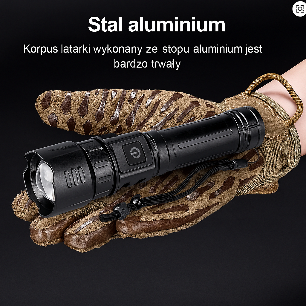 3 tryby + zoom teleskopowy: tryby Strong/Weak/Flash z regulowaną wiązką światła (reflektor do 3640 stóp)