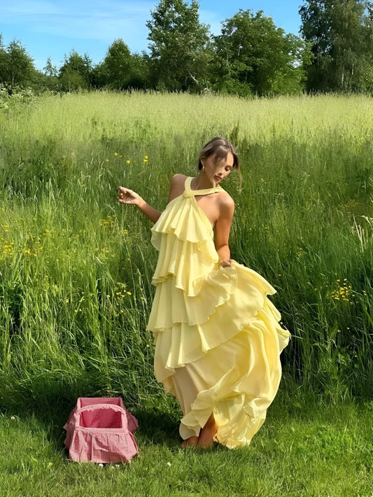 Sukienka maxi z falbankami i warstwami | Kwiatowe | Lekka i zwiewna