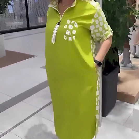 Camille – Sukienka z okrągłym dekoltem i 3/4 rękawami i kieszeniami